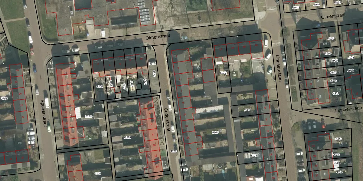 Het perceel waarop Cederstraat 7 staat heeft een oppervlakte van 4995 m². Dit is een zeer groot perceel. De perceeloppervlakte wordt geregistreerd door het Kadaster. Gedetailleerde informatie over de maten van dit perceel kunt u vinden in het rapport Kadastrale kaart met maatvoering van Cederstraat 7.