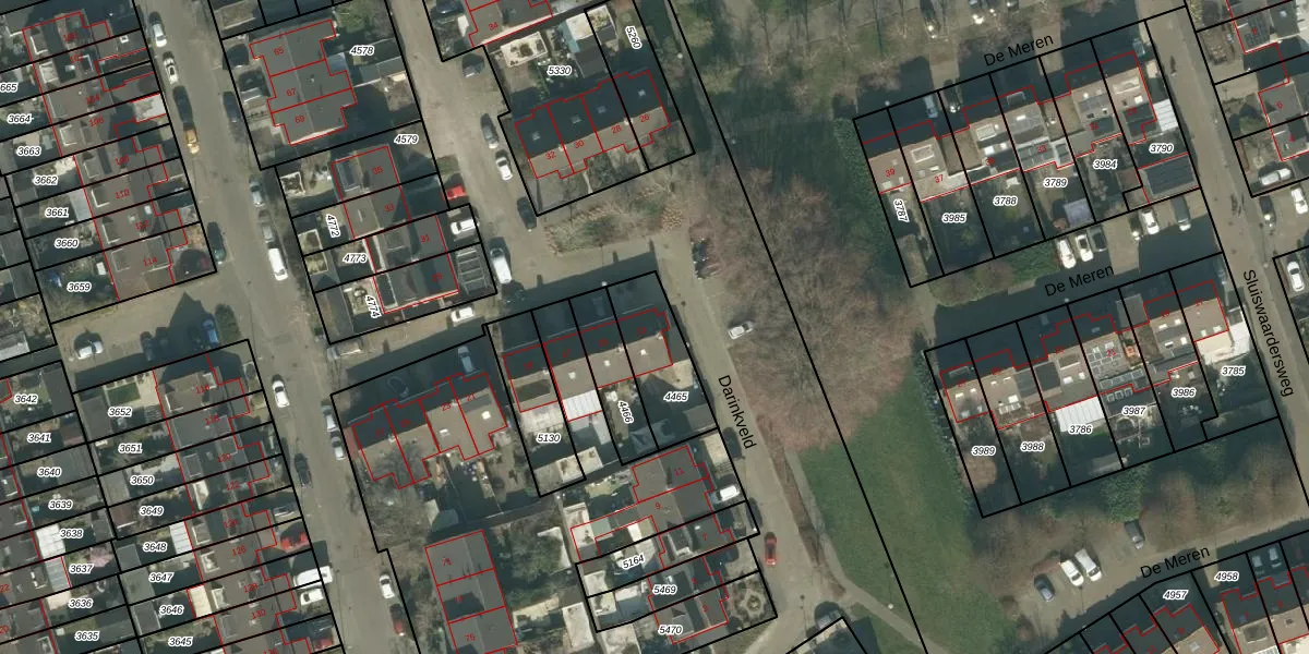 Darinkveld 13 is gelegen op kadastraal perceel ODB02B4465. Deze kadastrale aanduiding is uniek en wordt gebruikt door het Kadaster om eigendomsrechten en andere zakelijke rechten vast te leggen. Het perceel maakt onderdeel uit van de kadastrale gemeente Oudenbosch.