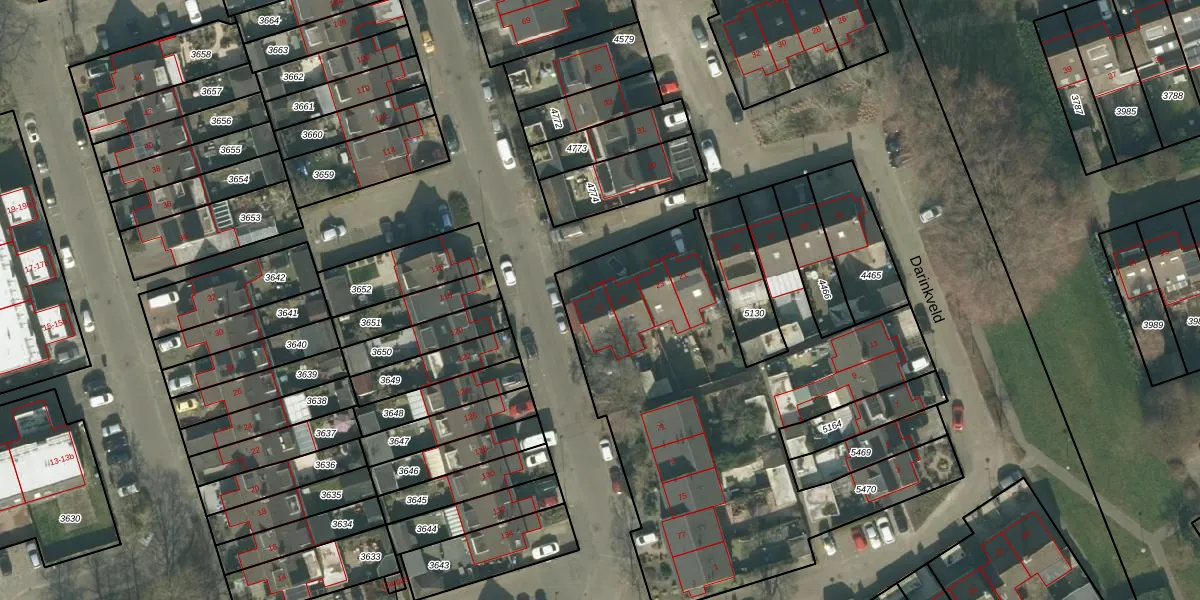 Het perceel waarop Darinkveld 27 staat heeft een oppervlakte van 2309 m². Dit is een zeer groot perceel. De perceeloppervlakte wordt geregistreerd door het Kadaster. Gedetailleerde informatie over de maten van dit perceel kunt u vinden in het rapport Kadastrale kaart met maatvoering van Darinkveld 27.