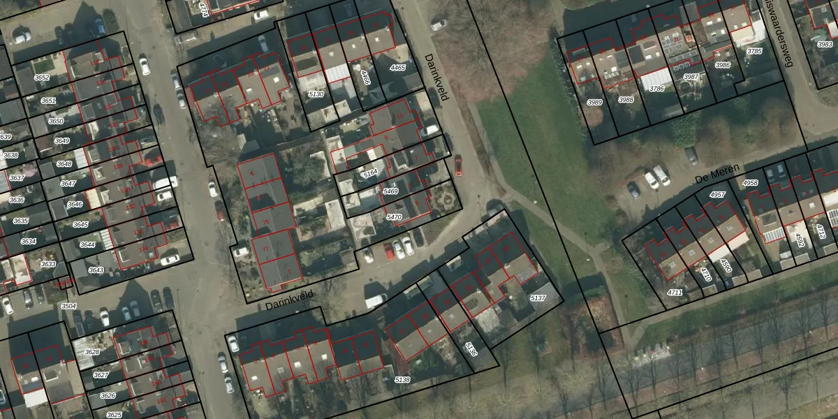 Darinkveld 3 is gelegen op kadastraal perceel ODB02B5470. Deze kadastrale aanduiding is uniek en wordt gebruikt door het Kadaster om eigendomsrechten en andere zakelijke rechten vast te leggen. Het perceel maakt onderdeel uit van de kadastrale gemeente Oudenbosch.