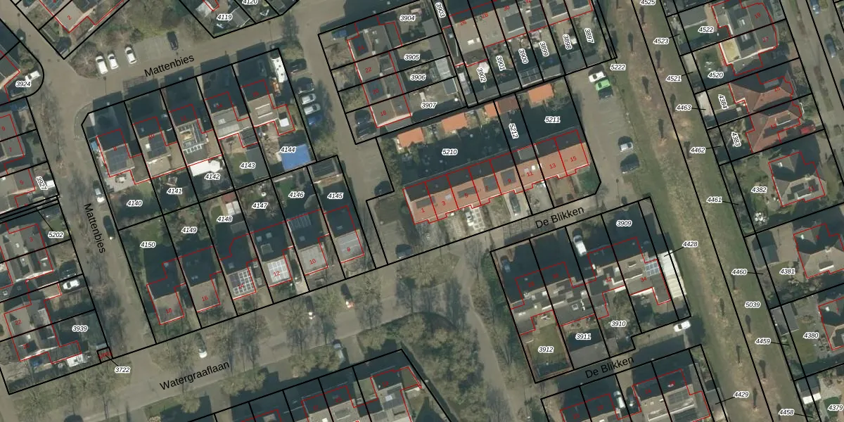Het perceel waarop De Blikken 1 staat heeft een oppervlakte van 970 m². Dit is een groot perceel. De perceeloppervlakte wordt geregistreerd door het Kadaster. Gedetailleerde informatie over de maten van dit perceel kunt u vinden in het rapport Kadastrale kaart met maatvoering van De Blikken 1.