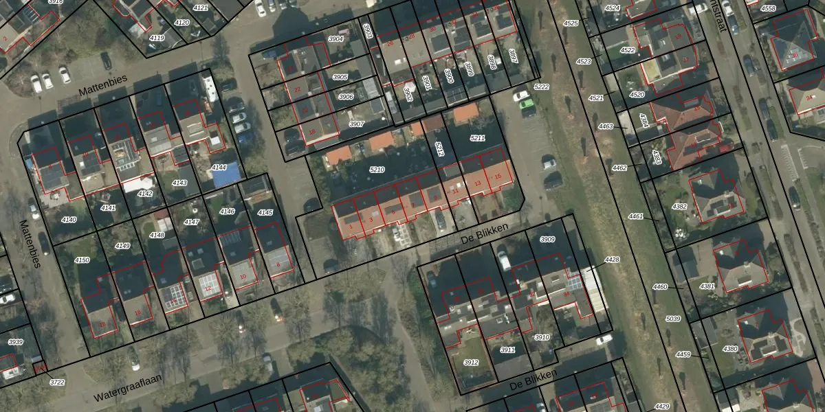 Het perceel waarop De Blikken 7 staat heeft een oppervlakte van 970 m². Dit is een groot perceel. De perceeloppervlakte wordt geregistreerd door het Kadaster. Gedetailleerde informatie over de maten van dit perceel kunt u vinden in het rapport Kadastrale kaart met maatvoering van De Blikken 7.
