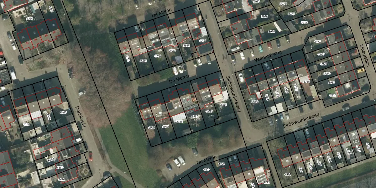 De Meren 21 is gelegen op kadastraal perceel ODB02B3987. Deze kadastrale aanduiding is uniek en wordt gebruikt door het Kadaster om eigendomsrechten en andere zakelijke rechten vast te leggen. Het perceel maakt onderdeel uit van de kadastrale gemeente Oudenbosch.
