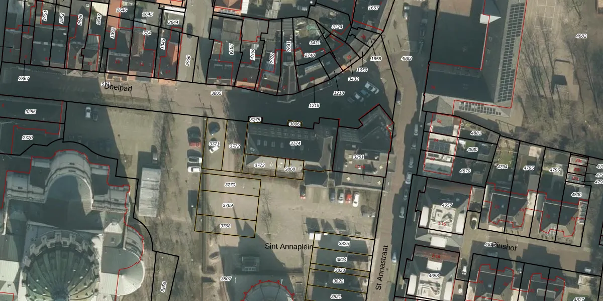 Het perceel waarop het adres ligt is ODB02-D-3774. De afkorting 'ODB02' staat voor kadastrale gemeente Oudenbosch. Het perceel is kleiner dan gemiddeld in Oudenbosch. Het perceel is 376 m² groot, terwijl het gemiddelde ligt op 1824,63 m². Het kleinste perceel in de kadastrale gemeente is 0 m² groot. De grootste perceeloppervlakte is 17,9 ha. Op het perceel zijn 9 adressen aanwezig. In de Basisregistratie Kadaster (BRK) werden de grenzen van het perceel geregistreerd op 11-12-2024.