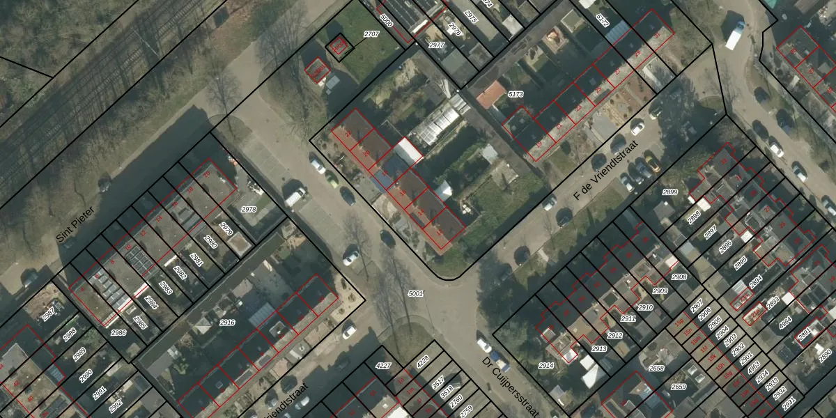 Het perceel waarop Dr Cuijpersstraat 14 staat heeft een oppervlakte van 2775 m². Dit is een zeer groot perceel. De perceeloppervlakte wordt geregistreerd door het Kadaster. Gedetailleerde informatie over de maten van dit perceel kunt u vinden in het rapport Kadastrale kaart met maatvoering van Dr Cuijpersstraat 14.