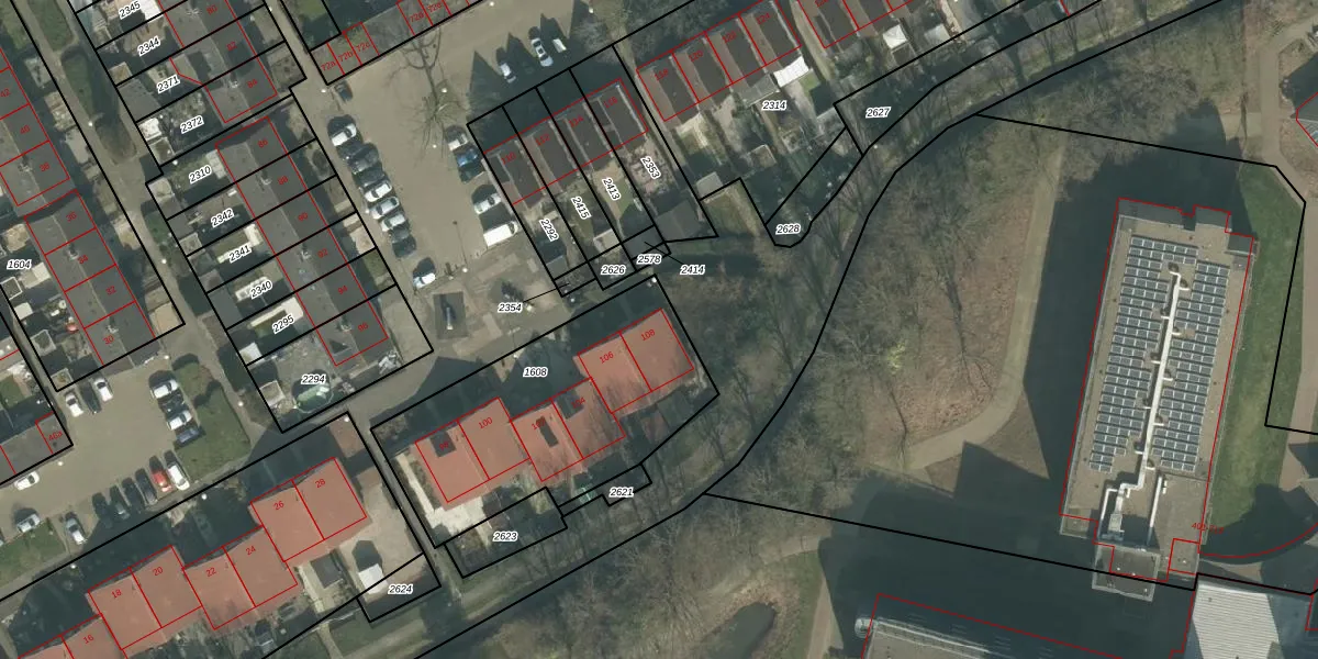 Het perceel waarop Duiventoren 108 staat heeft een oppervlakte van 1076 m². Dit is een zeer groot perceel. De perceeloppervlakte wordt geregistreerd door het Kadaster. Gedetailleerde informatie over de maten van dit perceel kunt u vinden in het rapport Kadastrale kaart met maatvoering van Duiventoren 108.