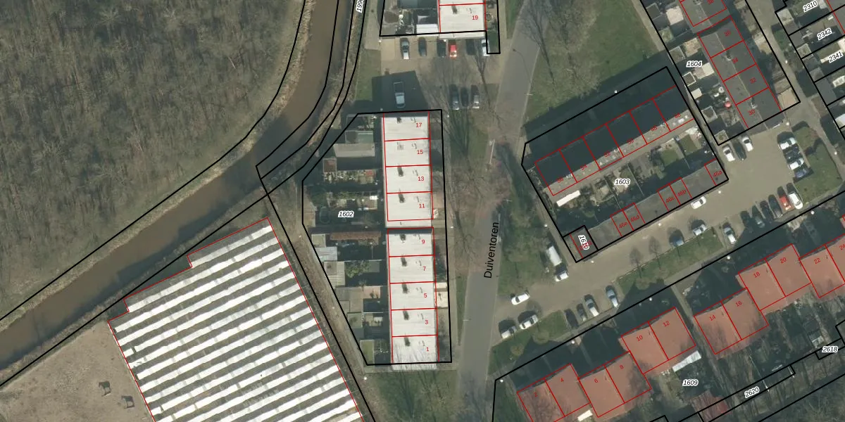 Duiventoren 11 is gelegen op kadastraal perceel ODB02C1602. Deze kadastrale aanduiding is uniek en wordt gebruikt door het Kadaster om eigendomsrechten en andere zakelijke rechten vast te leggen. Het perceel maakt onderdeel uit van de kadastrale gemeente Oudenbosch.