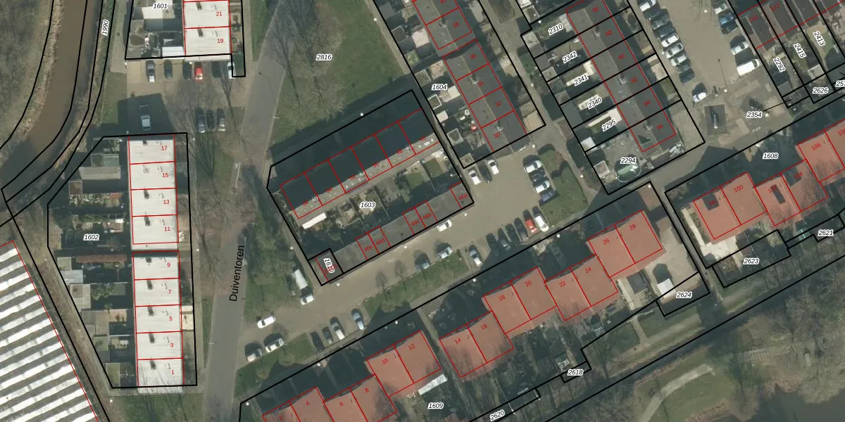Duiventoren 46-b is gelegen op kadastraal perceel ODB02C1603. Deze kadastrale aanduiding is uniek en wordt gebruikt door het Kadaster om eigendomsrechten en andere zakelijke rechten vast te leggen. Het perceel maakt onderdeel uit van de kadastrale gemeente Oudenbosch.