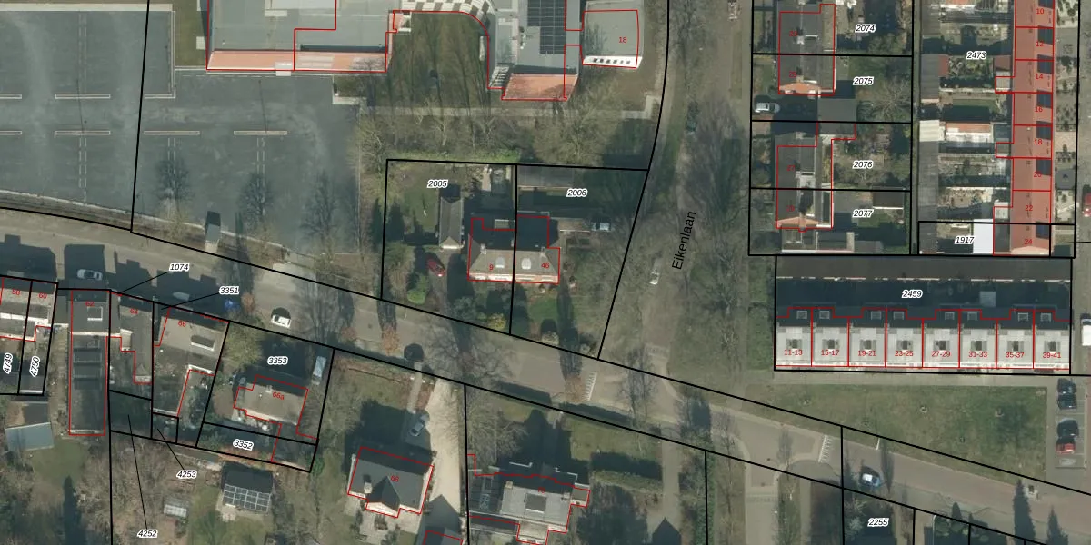 Het perceel waarop Eikenlaan 46 staat heeft een oppervlakte van 652 m². Dit is een groot perceel. De perceeloppervlakte wordt geregistreerd door het Kadaster. Gedetailleerde informatie over de maten van dit perceel kunt u vinden in het rapport Kadastrale kaart met maatvoering van Eikenlaan 46.
