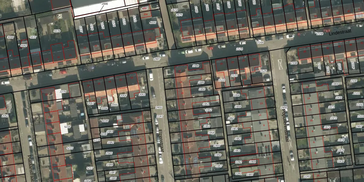 Gebruik de zoekbalk of klik op een perceel voor informatie over de adressen binnen dit perceel.