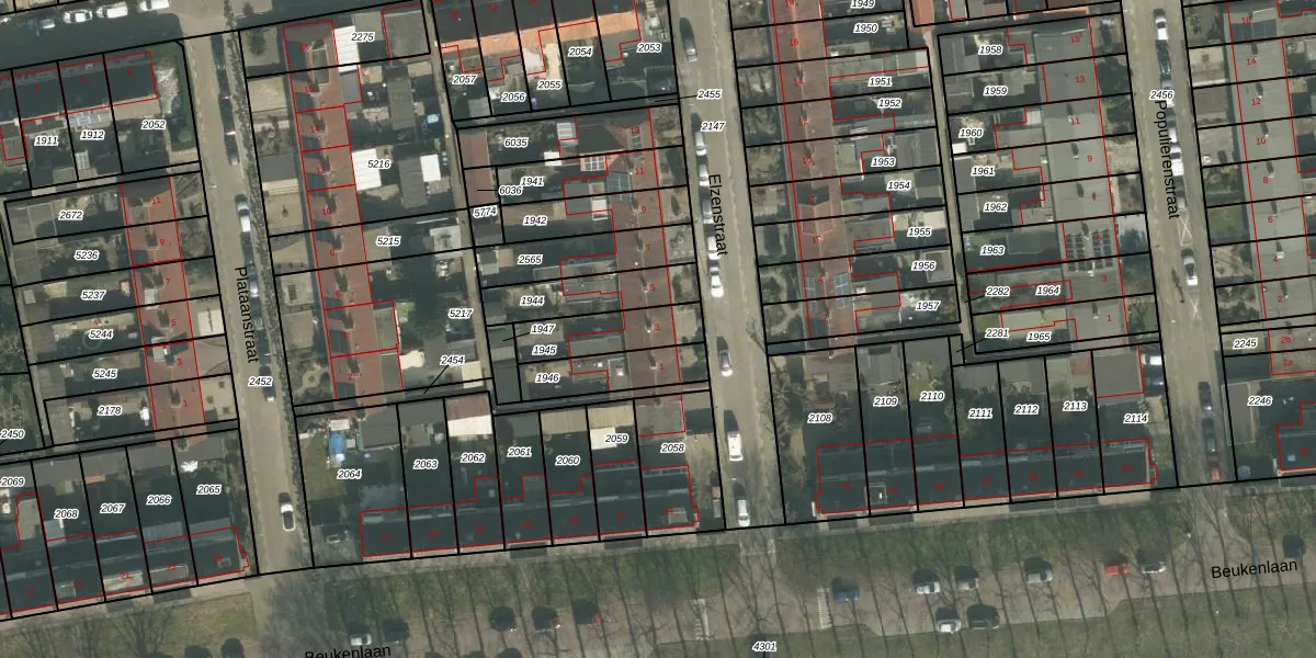 Het perceel waarop Elzenstraat 3 staat heeft een oppervlakte van 174 m². Dit is een middelgroot perceel. De perceeloppervlakte wordt geregistreerd door het Kadaster. Gedetailleerde informatie over de maten van dit perceel kunt u vinden in het rapport Kadastrale kaart met maatvoering van Elzenstraat 3.