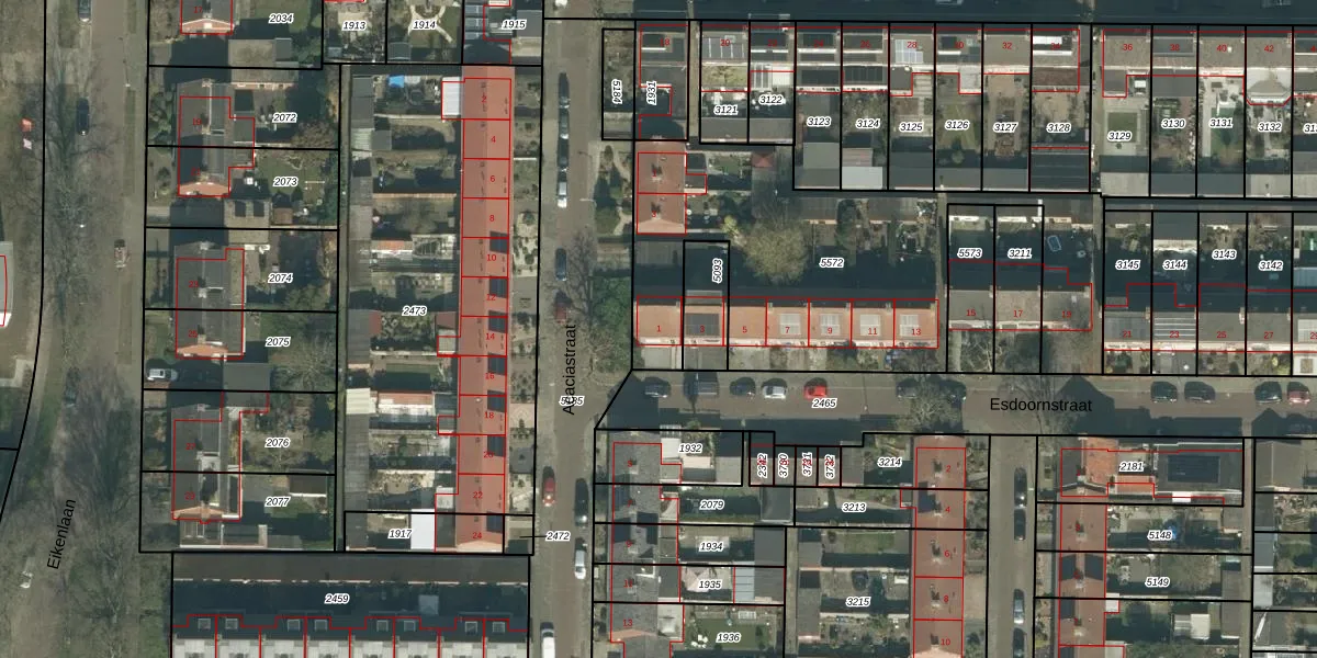 Het perceel waarop Esdoornstraat 1 staat heeft een oppervlakte van 1689 m². Dit is een zeer groot perceel. De perceeloppervlakte wordt geregistreerd door het Kadaster. Gedetailleerde informatie over de maten van dit perceel kunt u vinden in het rapport Kadastrale kaart met maatvoering van Esdoornstraat 1.