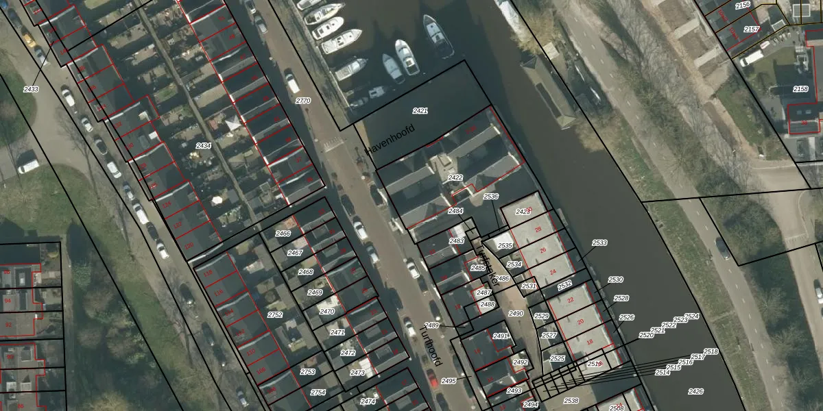 Het perceel waarop Havenhoofd 16 staat heeft een oppervlakte van 766 m². Dit is een groot perceel. De perceeloppervlakte wordt geregistreerd door het Kadaster. Gedetailleerde informatie over de maten van dit perceel kunt u vinden in het rapport Kadastrale kaart met maatvoering van Havenhoofd 16.