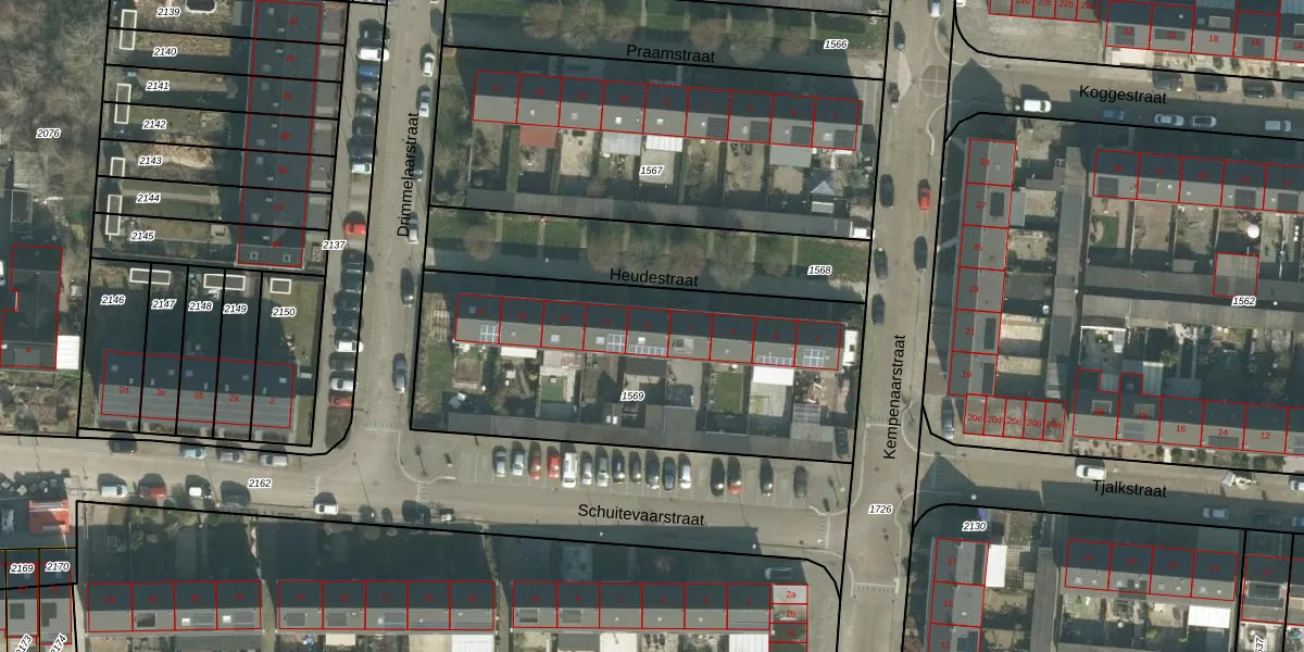 Het perceel waarop Heudestraat 9 staat heeft een oppervlakte van 1679 m². Dit is een zeer groot perceel. De perceeloppervlakte wordt geregistreerd door het Kadaster. Gedetailleerde informatie over de maten van dit perceel kunt u vinden in het rapport Kadastrale kaart met maatvoering van Heudestraat 9.