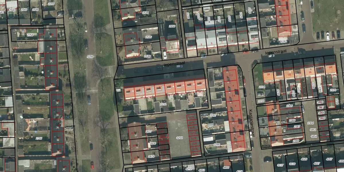 Het perceel waarop Iepenstraat 10 staat heeft een oppervlakte van 1187 m². Dit is een zeer groot perceel. De perceeloppervlakte wordt geregistreerd door het Kadaster. Gedetailleerde informatie over de maten van dit perceel kunt u vinden in het rapport Kadastrale kaart met maatvoering van Iepenstraat 10.