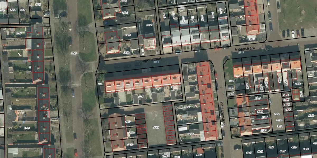 Het perceel waarop Iepenstraat 12 staat heeft een oppervlakte van 1187 m². Dit is een zeer groot perceel. De perceeloppervlakte wordt geregistreerd door het Kadaster. Gedetailleerde informatie over de maten van dit perceel kunt u vinden in het rapport Kadastrale kaart met maatvoering van Iepenstraat 12.