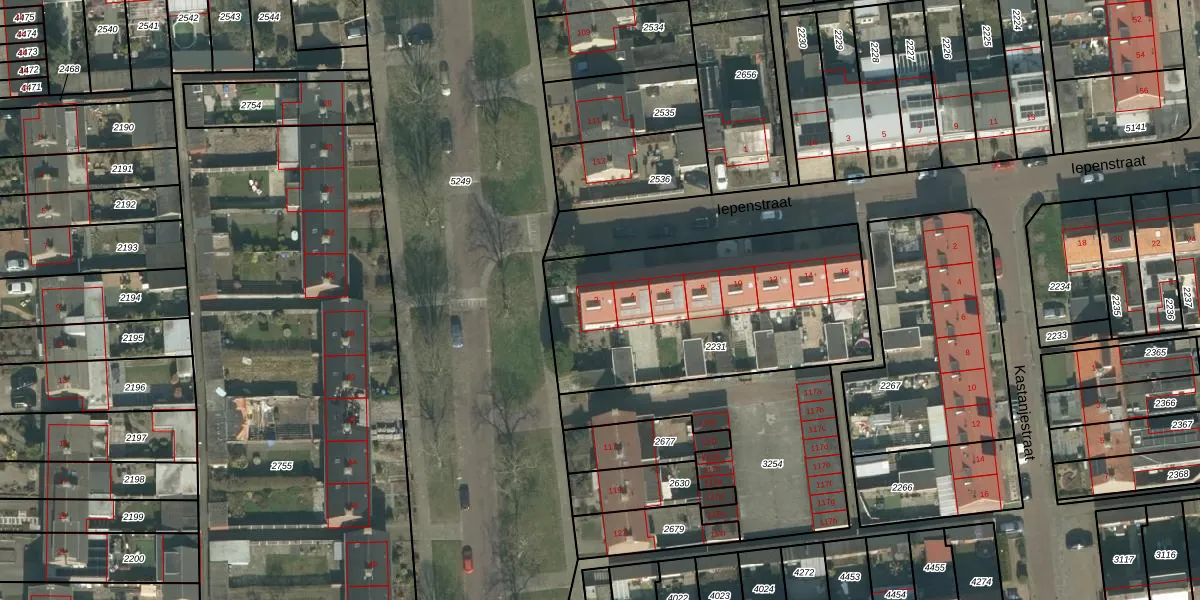 Iepenstraat 2 is gelegen op kadastraal perceel ODB02B2231. Deze kadastrale aanduiding is uniek en wordt gebruikt door het Kadaster om eigendomsrechten en andere zakelijke rechten vast te leggen. Het perceel maakt onderdeel uit van de kadastrale gemeente Oudenbosch.