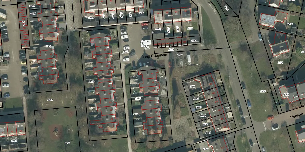 Jaap Edenlaan 64 is gelegen op kadastraal perceel ODB02C1697. Deze kadastrale aanduiding is uniek en wordt gebruikt door het Kadaster om eigendomsrechten en andere zakelijke rechten vast te leggen. Het perceel maakt onderdeel uit van de kadastrale gemeente Oudenbosch.