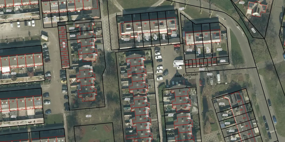 Jaap Edenlaan 96 is gelegen op kadastraal perceel ODB02C1698. Deze kadastrale aanduiding is uniek en wordt gebruikt door het Kadaster om eigendomsrechten en andere zakelijke rechten vast te leggen. Het perceel maakt onderdeel uit van de kadastrale gemeente Oudenbosch.
