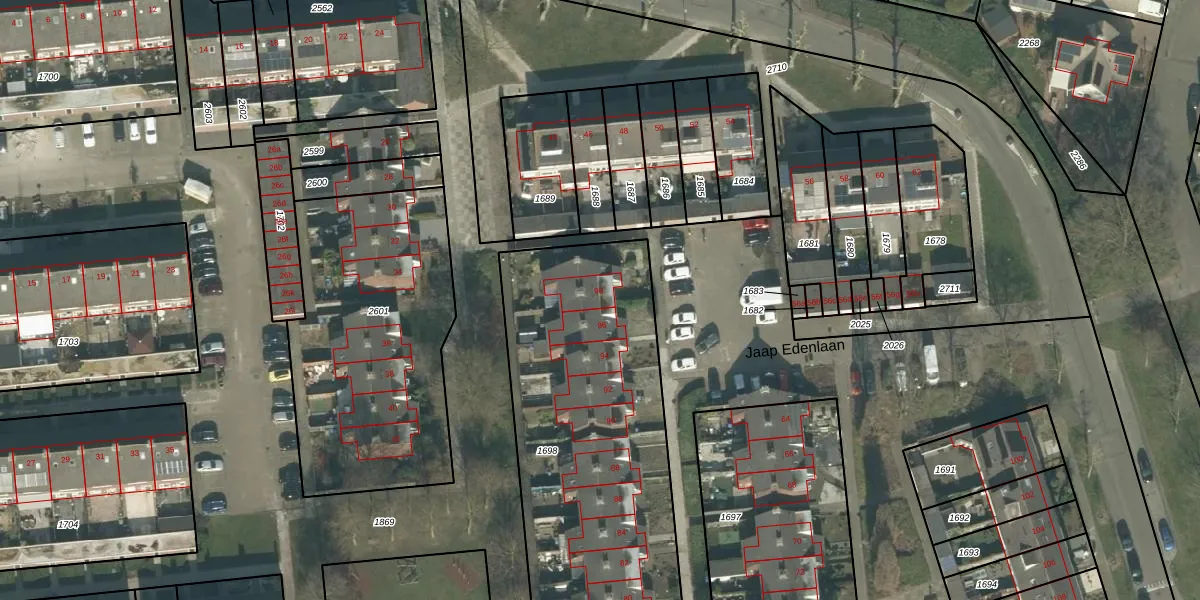 Jaap Edenlaan 98 is gelegen op kadastraal perceel ODB02C1698. Deze kadastrale aanduiding is uniek en wordt gebruikt door het Kadaster om eigendomsrechten en andere zakelijke rechten vast te leggen. Het perceel maakt onderdeel uit van de kadastrale gemeente Oudenbosch.