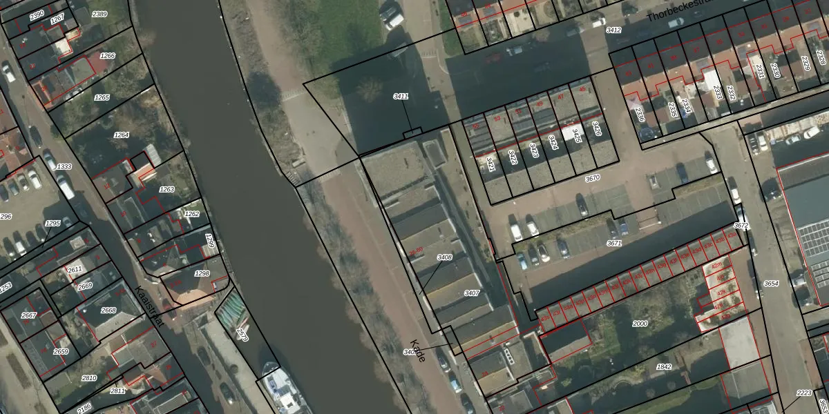 Het perceel waarop Kade 30 staat heeft een oppervlakte van 1608 m². Dit is een zeer groot perceel. De perceeloppervlakte wordt geregistreerd door het Kadaster. Gedetailleerde informatie over de maten van dit perceel kunt u vinden in het rapport Kadastrale kaart met maatvoering van Kade 30.