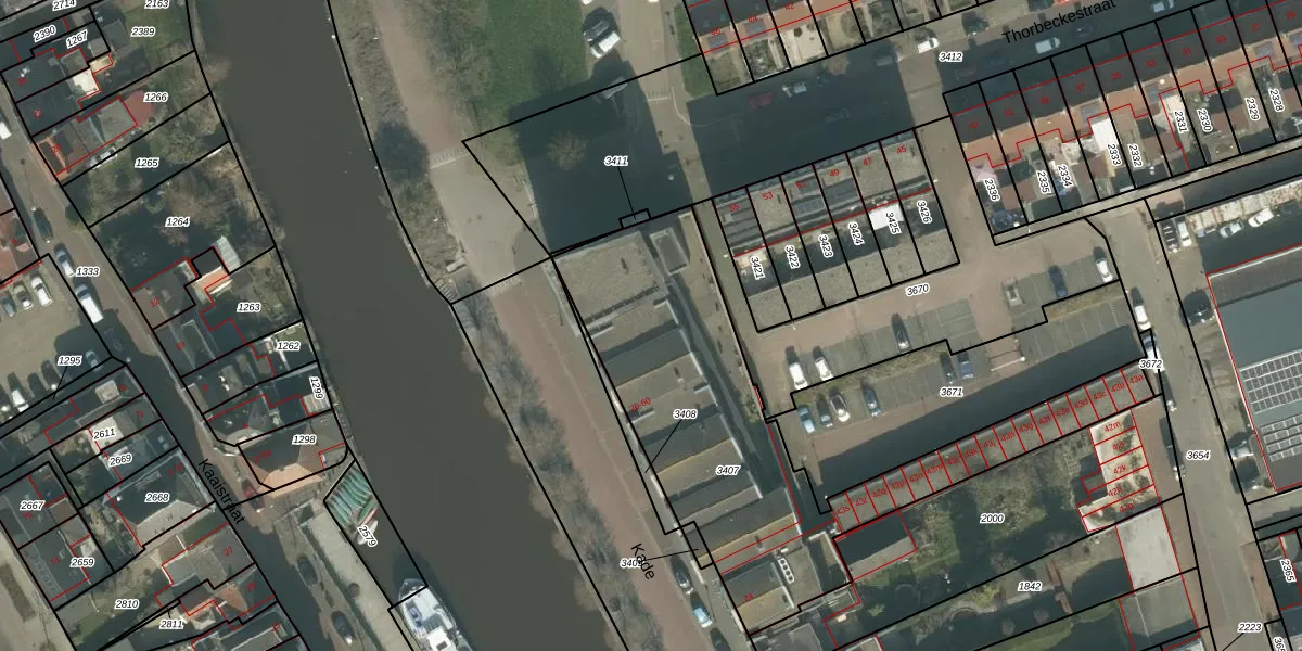 Het perceel waarop Kade 32 staat heeft een oppervlakte van 1608 m². Dit is een zeer groot perceel. De perceeloppervlakte wordt geregistreerd door het Kadaster. Gedetailleerde informatie over de maten van dit perceel kunt u vinden in het rapport Kadastrale kaart met maatvoering van Kade 32.