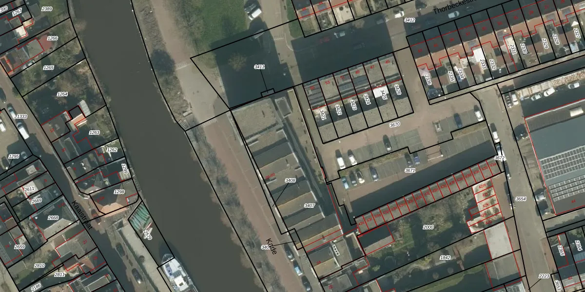 Het perceel waarop Kade 50 staat heeft een oppervlakte van 1608 m². Dit is een zeer groot perceel. De perceeloppervlakte wordt geregistreerd door het Kadaster. Gedetailleerde informatie over de maten van dit perceel kunt u vinden in het rapport Kadastrale kaart met maatvoering van Kade 50.
