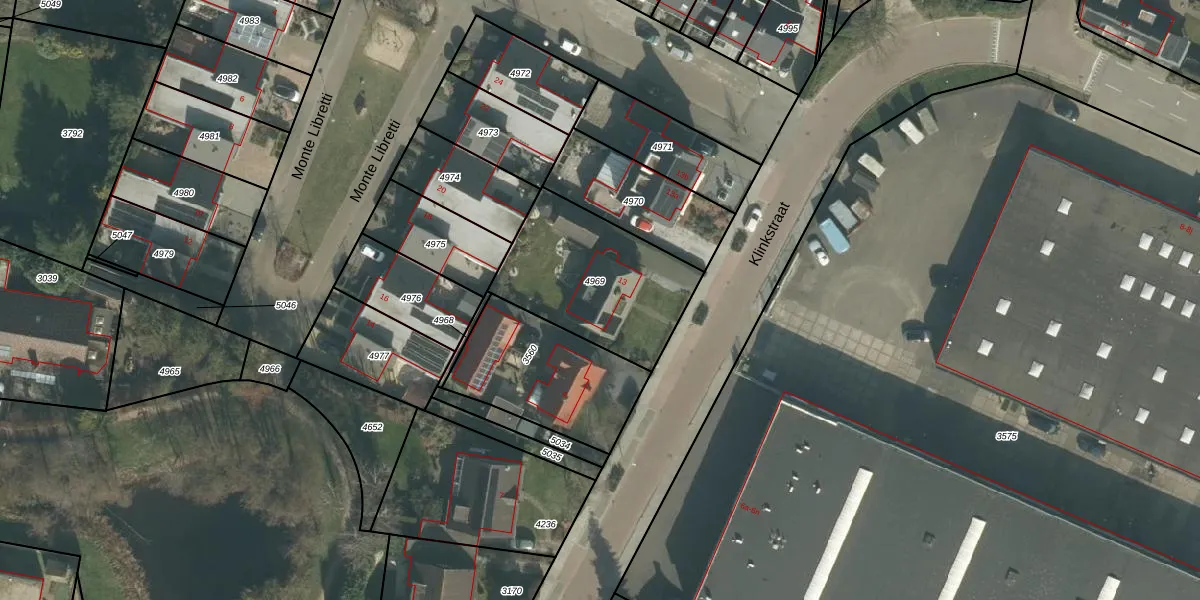 Klinkstraat 13 is gelegen op kadastraal perceel ODB02B4969. Deze kadastrale aanduiding is uniek en wordt gebruikt door het Kadaster om eigendomsrechten en andere zakelijke rechten vast te leggen. Het perceel maakt onderdeel uit van de kadastrale gemeente Oudenbosch.