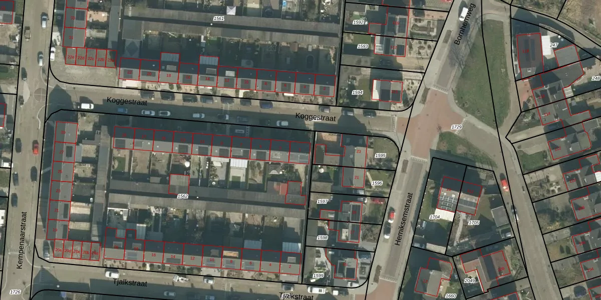 Het perceel waarop Koggestraat 1 staat heeft een oppervlakte van 4565 m². Dit is een zeer groot perceel. De perceeloppervlakte wordt geregistreerd door het Kadaster. Gedetailleerde informatie over de maten van dit perceel kunt u vinden in het rapport Kadastrale kaart met maatvoering van Koggestraat 1.