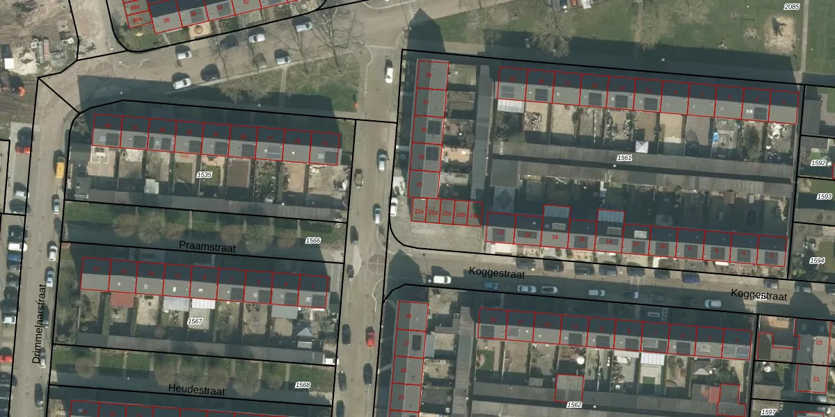 Koggestraat 22-e is gelegen op kadastraal perceel ODB02A1561. Deze kadastrale aanduiding is uniek en wordt gebruikt door het Kadaster om eigendomsrechten en andere zakelijke rechten vast te leggen. Het perceel maakt onderdeel uit van de kadastrale gemeente Oudenbosch.