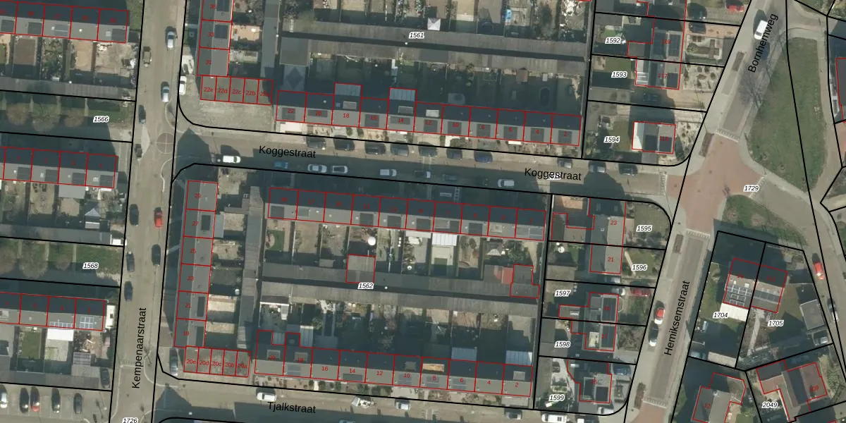 Het perceel waarop Koggestraat 9 staat heeft een oppervlakte van 4565 m². Dit is een zeer groot perceel. De perceeloppervlakte wordt geregistreerd door het Kadaster. Gedetailleerde informatie over de maten van dit perceel kunt u vinden in het rapport Kadastrale kaart met maatvoering van Koggestraat 9.