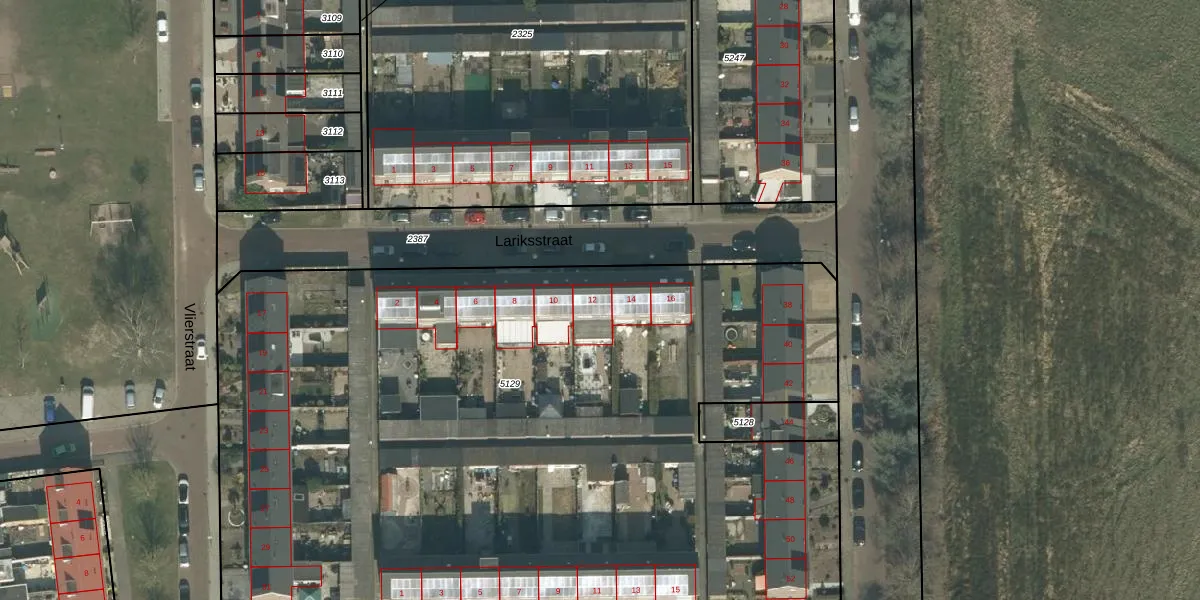 Het perceel waarop Lariksstraat 12 staat heeft een oppervlakte van 6120 m². Dit is een zeer groot perceel. De perceeloppervlakte wordt geregistreerd door het Kadaster. Gedetailleerde informatie over de maten van dit perceel kunt u vinden in het rapport Kadastrale kaart met maatvoering van Lariksstraat 12.