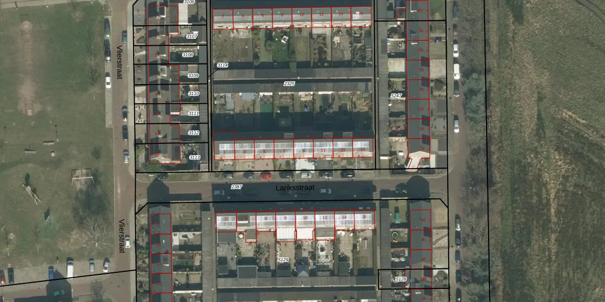 Het perceel waarop Lariksstraat 9 staat heeft een oppervlakte van 3229 m². Dit is een zeer groot perceel. De perceeloppervlakte wordt geregistreerd door het Kadaster. Gedetailleerde informatie over de maten van dit perceel kunt u vinden in het rapport Kadastrale kaart met maatvoering van Lariksstraat 9.