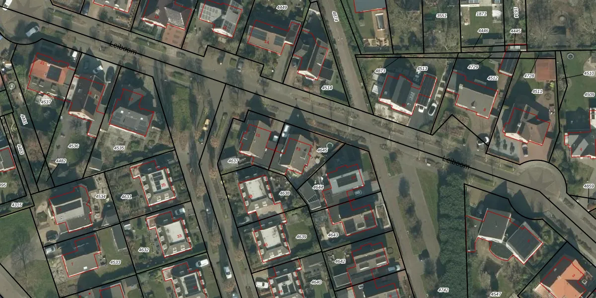 Het perceel waarop Leiboom 13 staat heeft een oppervlakte van 303 m². Dit is een groot perceel. De perceeloppervlakte wordt geregistreerd door het Kadaster. Gedetailleerde informatie over de maten van dit perceel kunt u vinden in het rapport Kadastrale kaart met maatvoering van Leiboom 13.