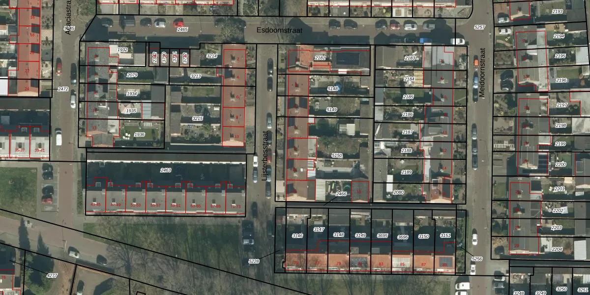Het perceel waarop Lijsterbesstraat 9 staat heeft een oppervlakte van 951 m². Dit is een groot perceel. De perceeloppervlakte wordt geregistreerd door het Kadaster. Gedetailleerde informatie over de maten van dit perceel kunt u vinden in het rapport Kadastrale kaart met maatvoering van Lijsterbesstraat 9.