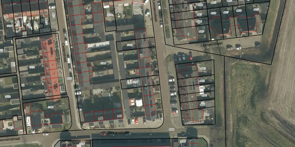 Het perceel waarop Linnaeuslaan 12 staat heeft een oppervlakte van 4995 m². Dit is een zeer groot perceel. De perceeloppervlakte wordt geregistreerd door het Kadaster. Gedetailleerde informatie over de maten van dit perceel kunt u vinden in het rapport Kadastrale kaart met maatvoering van Linnaeuslaan 12.