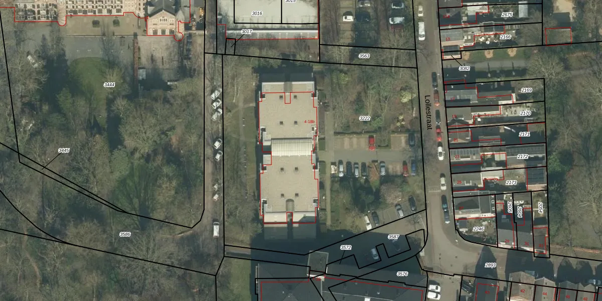 Het perceel waarop Lollestraat 10-a staat heeft een oppervlakte van 3885 m². Dit is een zeer groot perceel. De perceeloppervlakte wordt geregistreerd door het Kadaster. Gedetailleerde informatie over de maten van dit perceel kunt u vinden in het rapport Kadastrale kaart met maatvoering van Lollestraat 10-a.