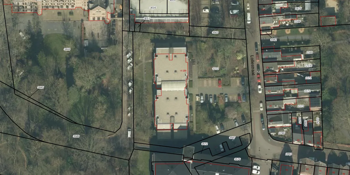 Het perceel waarop Lollestraat 10-b staat heeft een oppervlakte van 3885 m². Dit is een zeer groot perceel. De perceeloppervlakte wordt geregistreerd door het Kadaster. Gedetailleerde informatie over de maten van dit perceel kunt u vinden in het rapport Kadastrale kaart met maatvoering van Lollestraat 10-b.