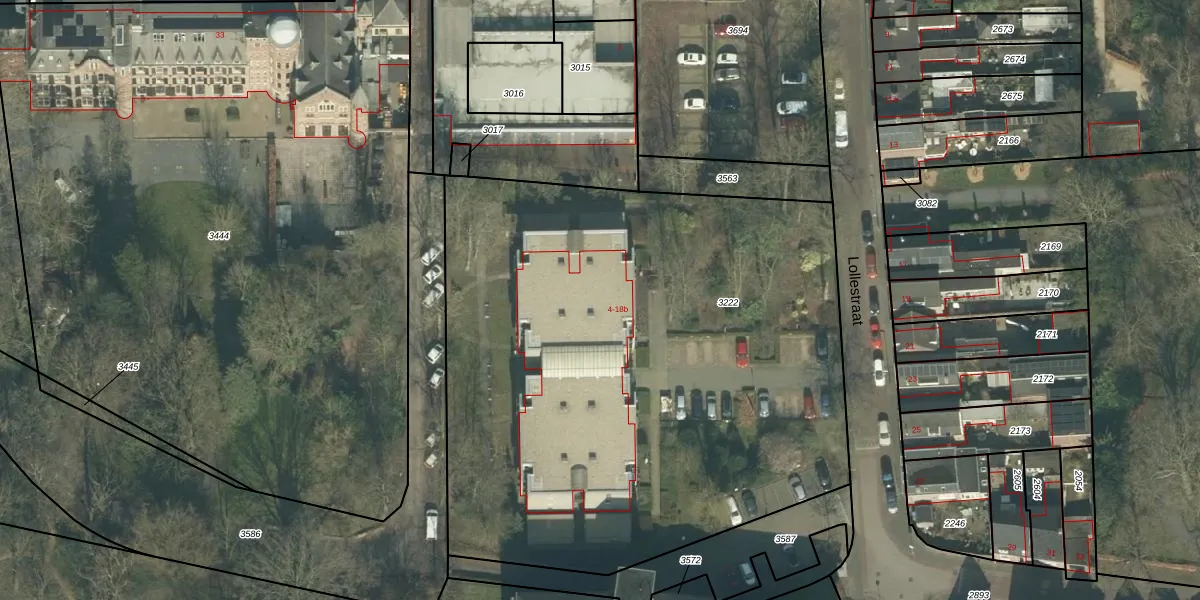 Het perceel waarop Lollestraat 6-a staat heeft een oppervlakte van 3885 m². Dit is een zeer groot perceel. De perceeloppervlakte wordt geregistreerd door het Kadaster. Gedetailleerde informatie over de maten van dit perceel kunt u vinden in het rapport Kadastrale kaart met maatvoering van Lollestraat 6-a.
