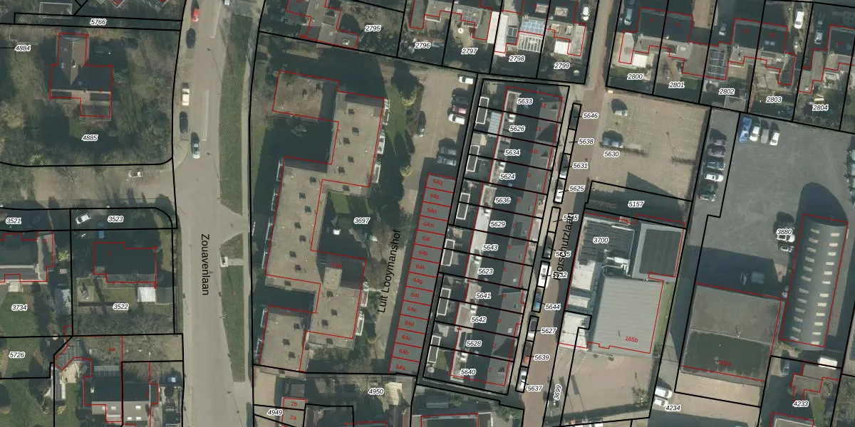 Luit Looymanshof 64-n is gelegen op kadastraal perceel ODB02B3697. Deze kadastrale aanduiding is uniek en wordt gebruikt door het Kadaster om eigendomsrechten en andere zakelijke rechten vast te leggen. Het perceel maakt onderdeel uit van de kadastrale gemeente Oudenbosch.