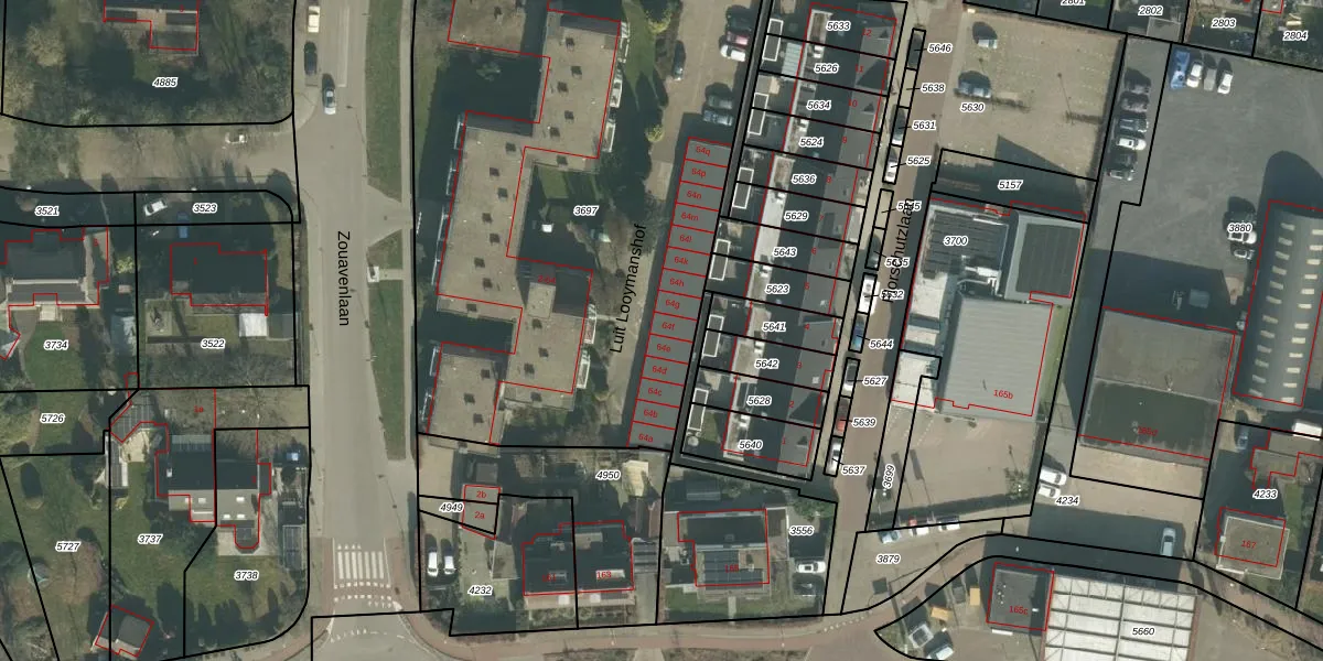 Luit Looymanshof 64-f is gelegen op kadastraal perceel ODB02B3697. Deze kadastrale aanduiding is uniek en wordt gebruikt door het Kadaster om eigendomsrechten en andere zakelijke rechten vast te leggen. Het perceel maakt onderdeel uit van de kadastrale gemeente Oudenbosch.