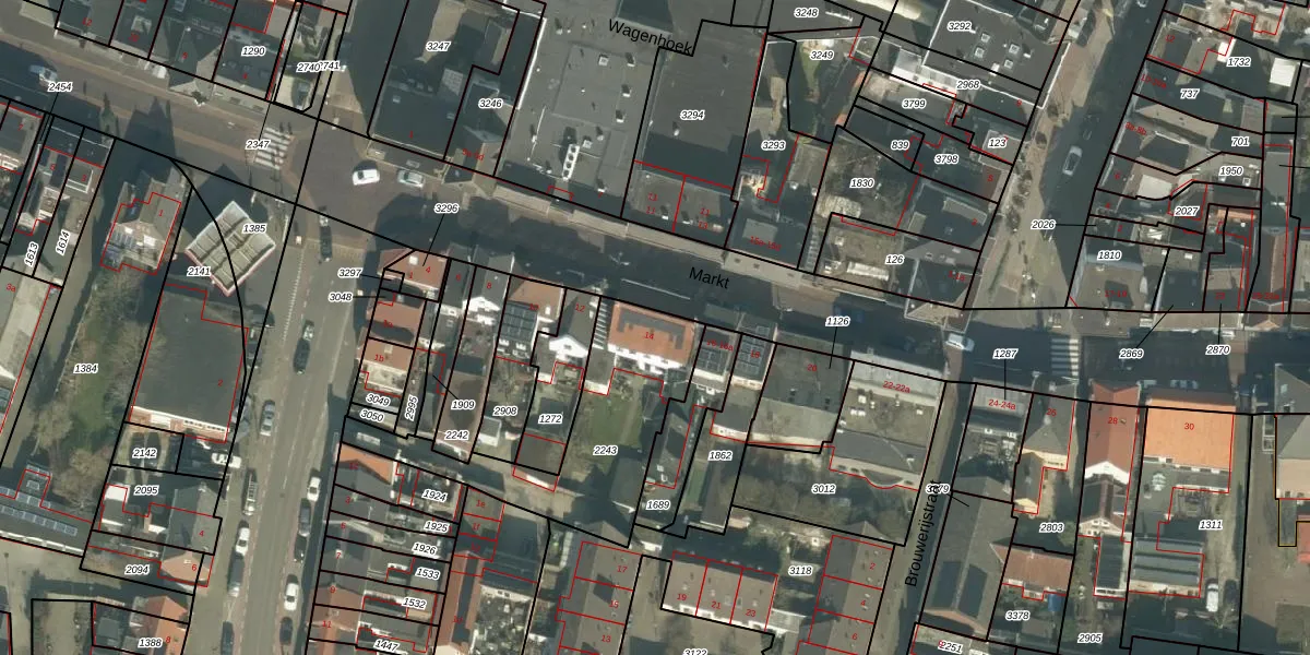Het perceel waarop Markt 14 staat heeft een oppervlakte van 685 m². Dit is een groot perceel. De perceeloppervlakte wordt geregistreerd door het Kadaster. Gedetailleerde informatie over de maten van dit perceel kunt u vinden in het rapport Kadastrale kaart met maatvoering van Markt 14.