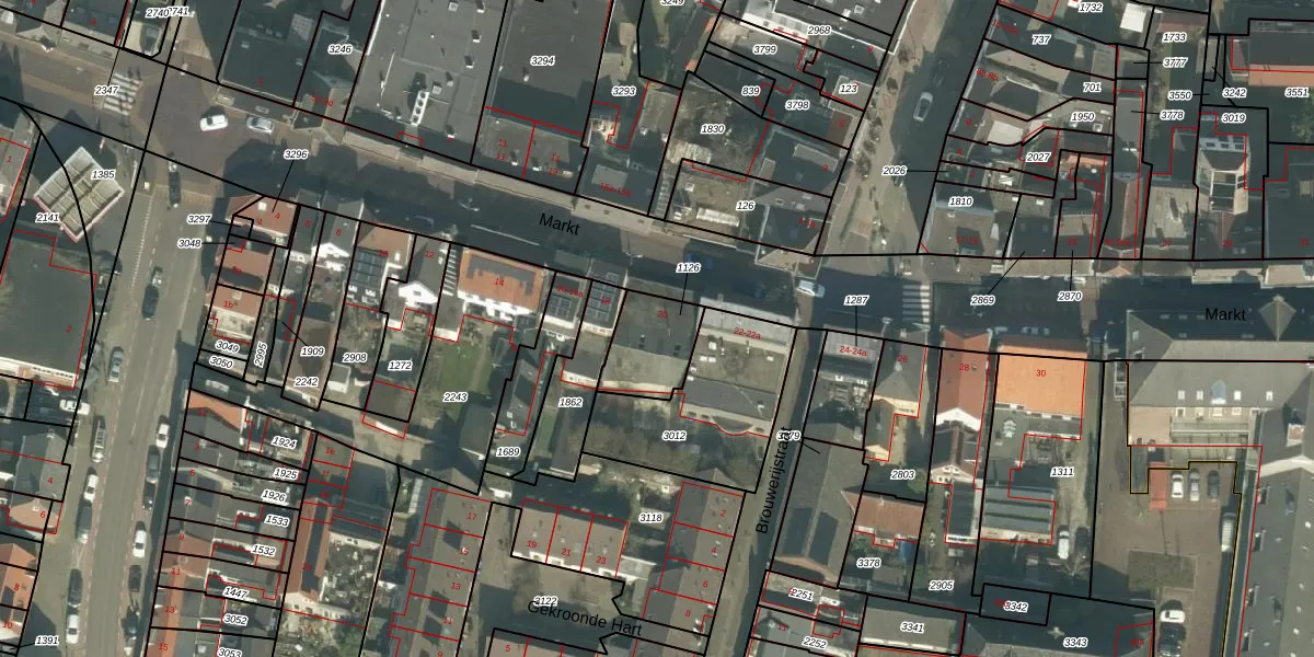 Het perceel waarop Markt 20-b staat heeft een oppervlakte van 184 m². Dit is een middelgroot perceel. De perceeloppervlakte wordt geregistreerd door het Kadaster. Gedetailleerde informatie over de maten van dit perceel kunt u vinden in het rapport Kadastrale kaart met maatvoering van Markt 20-b.