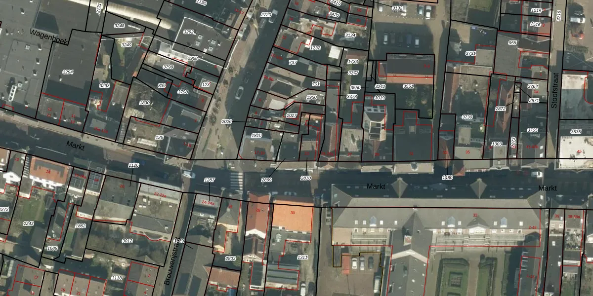 Het perceel waarop Markt 21 staat heeft een oppervlakte van 85 m². Dit is een klein perceel. De perceeloppervlakte wordt geregistreerd door het Kadaster. Gedetailleerde informatie over de maten van dit perceel kunt u vinden in het rapport Kadastrale kaart met maatvoering van Markt 21.