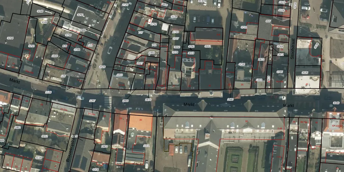 Gebruik de zoekbalk of klik op een perceel voor informatie over de adressen binnen dit perceel.