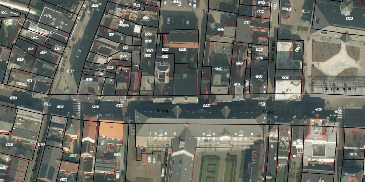 Het perceel waarop Markt 31 staat heeft een oppervlakte van 2809 m². Dit is een zeer groot perceel. De perceeloppervlakte wordt geregistreerd door het Kadaster. Gedetailleerde informatie over de maten van dit perceel kunt u vinden in het rapport Kadastrale kaart met maatvoering van Markt 31.