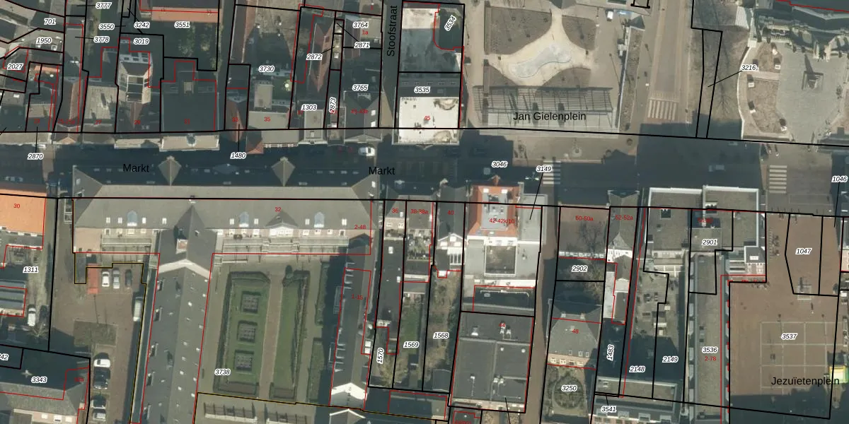 Het perceel waarop Markt 38 staat heeft een oppervlakte van 305 m². Dit is een groot perceel. De perceeloppervlakte wordt geregistreerd door het Kadaster. Gedetailleerde informatie over de maten van dit perceel kunt u vinden in het rapport Kadastrale kaart met maatvoering van Markt 38.