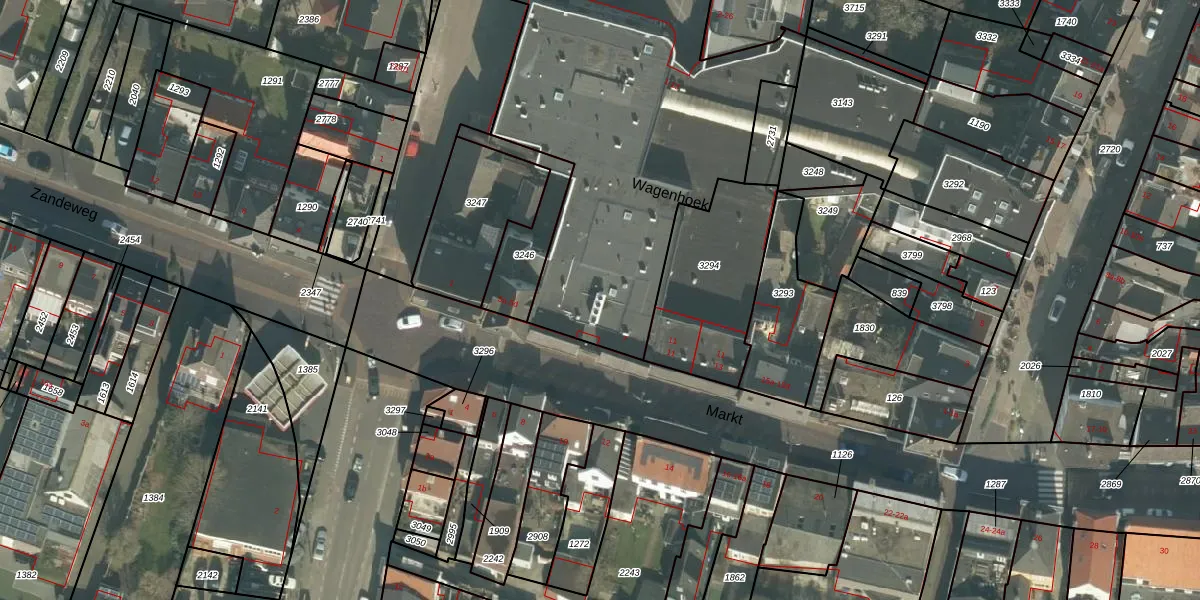 Het perceel waarop Markt 7 staat heeft een oppervlakte van 2255 m². Dit is een zeer groot perceel. De perceeloppervlakte wordt geregistreerd door het Kadaster. Gedetailleerde informatie over de maten van dit perceel kunt u vinden in het rapport Kadastrale kaart met maatvoering van Markt 7.