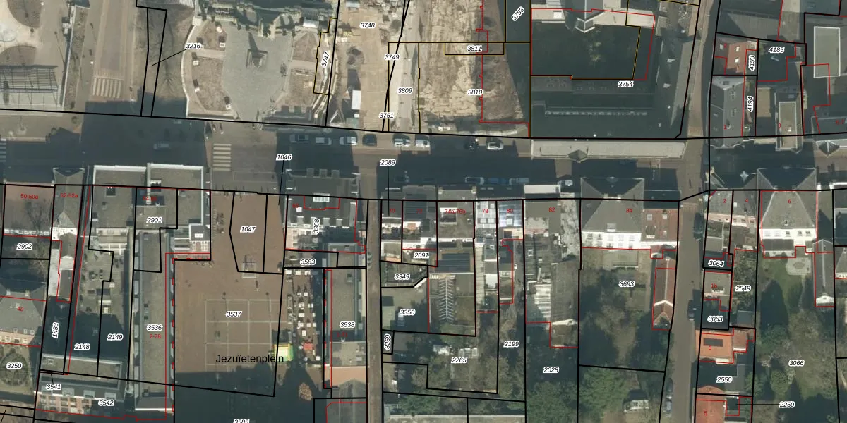 Het adres is gelegen op perceel 2091 in de sectie D en de kadastrale gemeente Oudenbosch. De kadastrale aanduiding is aldus ODB02-D-2091. Het perceel is kleiner dan gemiddeld in Oudenbosch. Het perceel is 125 m² groot, terwijl het gemiddelde ligt op 1824,63 m². Het kleinste perceel in de kadastrale gemeente is 0 m² groot. De grootste perceeloppervlakte is 17,9 ha. Er zijn geen andere adressen aanwezig op het perceel. In de Basisregistratie Kadaster (BRK) werden de grenzen van het perceel geregistreerd op 12-09-2002.