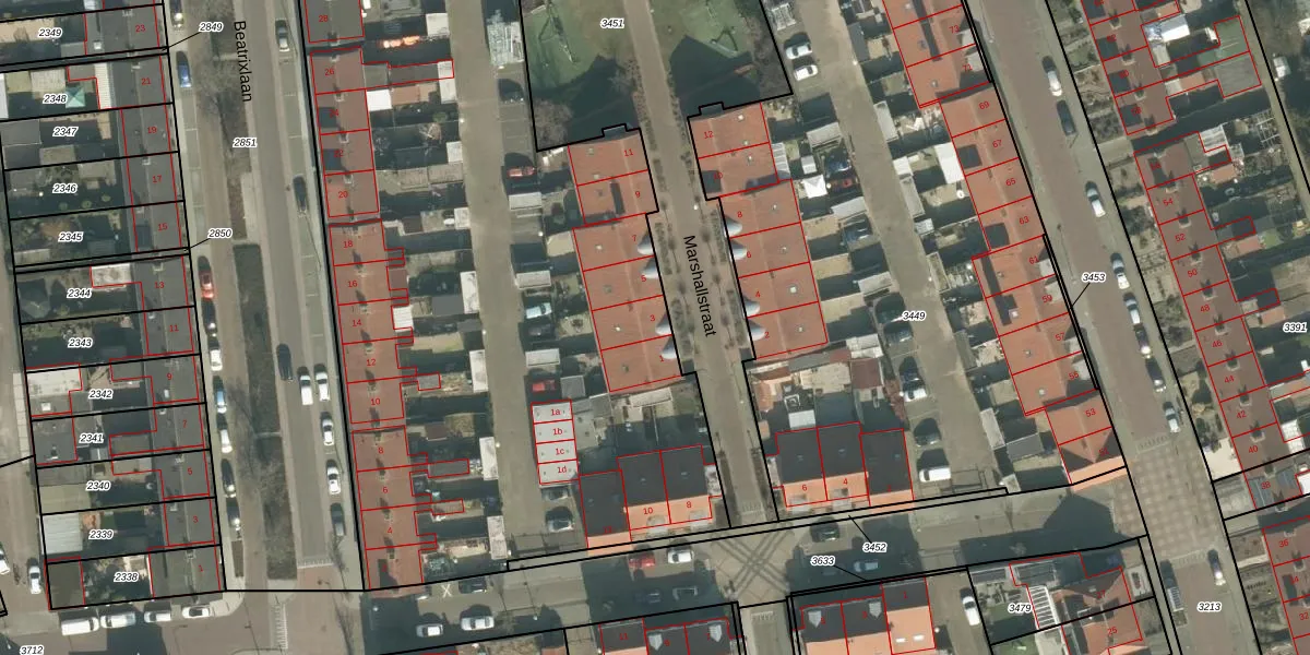 Marshallstraat 3 is gelegen op kadastraal perceel ODB02D3450. Deze kadastrale aanduiding is uniek en wordt gebruikt door het Kadaster om eigendomsrechten en andere zakelijke rechten vast te leggen. Het perceel maakt onderdeel uit van de kadastrale gemeente Oudenbosch.